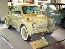 The Renault 4CV (French: quatre chevaux, pronounced [katʁə.ʃəvo])[5] is a rear-engined, rear-wheel-drive, 4-door economy supermini manufactured and marketed by the French manufacturer Renault from August 1947 through July 1961.[2] It was the first French car to sell over a million units, and was superseded by the Dauphine.