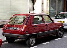 The Renault 5 is a four-passenger, three or five-door, front-engine, front wheel drive hatchback supermini manufactured and marketed by the French automaker Renault over two generations: 1972–1985 (also called R5) and 1984–1996 (also called Super 5 or Supercinq). The R5 was marketed in the US as Le Car, from 1976 to 1983.[1] Renault marketed a four-door sedan variant, the Renault 7, manufactured from 1974 to 1984 in Spain by Renault's subsidiary FASA-Renault[2] and exported in limited markets.