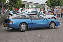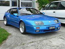 It was the first car launched by Alpine under Renault ownership (though Alpine had been affiliated with Renault for many years, with its earlier models using many Renault parts). Longer, wider, and taller, it effectively updated the design of its predecessor, the Alpine A310, updating that car's silhouette with modern design features like body-integrated bumpers and a triangular C-pillar with large rear windshield. Like its predecessor, it used the V6 PRV engine in a rear-engined layout, with extensive use of Polyester plastics and fibreglass for the body panels making it lighter and quicker than rivals such as the Porsche 944. Passenger room increased, making the rear seat more of a useful proposition, while equipment was much more complete and now included items such as power locks.[3] It was one of the most aerodynamic cars of its time, the naturally aspirated version achieved a record 0.28 drag coefficient in its class.[3] Due to its bigger tires and need for more cooling intakes, the Turbo's drag coefficient was a bit higher: 0.30 . The GTA name, used to denote the entire range of this generation, stands for "Grand Tourisme Alpine" but in most markets the car was marketed as the Renault Alpine V6 GT or as the Renault Alpine V6 Turbo.[4] In Great Britain it was sold simply as the Renault GTA,[5] as Sunbeam (and then Chrysler/Talbot) had been using the "Alpine" badge since the 1950s.