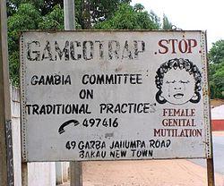 Female genital mutilation (FGM), also known as female genital circumcision or cutting, is the traditional, non-medical practice of altering or injuring the female reproductive organs, often by removing all or parts of the external genitalia.[59] It is mostly practiced in 30 countries in Africa, the Middle East, and Asia, and affects over 200 million women and girls worldwide. More severe forms of FGM are highly concentrated in Djibouti, Eritrea, Ethiopia, Somalia, and Sudan.[60]