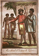 In the mid-15th century, the Portuguese landed on the Senegal coastline, followed by traders representing other countries, including the French.[19] Various European powers—Portugal, the Netherlands, and Great Britain—competed for trade in the area from the 15th century onward. In 1677, France gained control of what had become a minor departure point in the Atlantic slave trade—the island of Gorée next to modern Dakar, used as a base to purchase slaves from the warring chiefdoms on the mainland.[20][21]