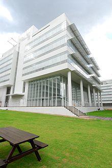 On 31 July 2007, RP's Woodlands campus was officially opened by Singapore's Prime Minister Lee Hsien Loong.[8] The campus was designed by Japanese architect, Fumihiko Maki[9] and DP Architects. Completed in 2006, the new campus is able to cater 13,000 students. It is conceived as a campus with a central nucleus which contains 11 learning Pods (8–9 storeys high) which are unified by 2 elliptical decks of common facilities, namely The Lawn and The Agora.[10]