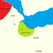 According to the 16th-century explorer Leo Africanus, the Adal Sultanate's realm encompassed the geographical area between the Bab el Mandeb and Cape Guardafui. It was therefore flanked to the south by the Ajuran Empire (Kingdom of Ajuuran) and to the west by the Abyssinian Empire (Abassin Empire).[40][41] Adal is mentioned by name in the 14th century in the context of the battles between the Muslims of the Somali and Afar seaboard and the Abyssinian King Amda Seyon I's Christian troops.[42] Adal originally had its capital in the port city of Zeila, situated in the northwestern Awdal region. The polity at the time was an Emirate in the larger Ifat Sultanate ruled by the Walashma dynasty.[43] According to I.M. Lewis, the polity was governed by local dynasties consisting of Afarized Arabs or Arabized Somalis, who also ruled over the similarly-established Sultanate of Mogadishu in the Benadir region to the south. Adal's history from this founding period forth would be characterized by a succession of battles with neighbouring Abyssinia.[36] At its height, the Adal kingdom controlled large parts of modern-day Djibouti, Somalia, Eritrea and Ethiopia. Between Djibouti City and Loyada are a number of anthropomorphic and phallic stelae. The structures are associated with graves of rectangular shape flanked by vertical slabs, as also found in Tiya, central Ethiopia. The Djibouti-Loyada stelae are of uncertain age, and some of them are adorned with a T-shaped symbol.[44] Additionally, archaeological excavations at Tiya have yielded tombs.[45] As of 1997, 118 stelae were reported in the area. Along with the stelae in the Hadiya Zone, the structures are identified by local residents as Yegragn Dingay or "Gran's stone", in reference to Imam Ahmad ibn Ibrahim al-Ghazi (Ahmad "Gurey" or "Gran"), ruler of the Adal Sultanate.[46]