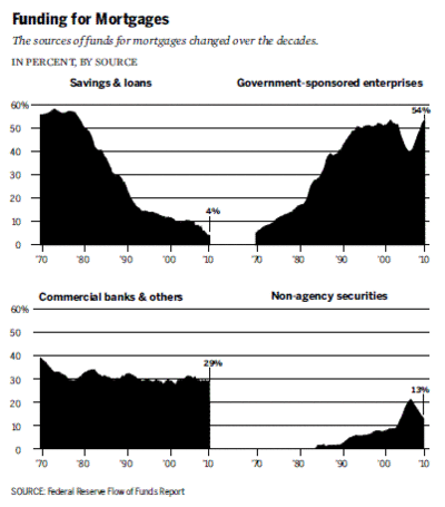 - ^ "an incredible 77 percent of the mortgages being made in America are guaranteed by Fannie and Freddie", The End of Fannie and Freddie?| By JOE NOCERA| nytimes.com| June 26, 2013