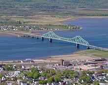 - 0.6 kilometres (0.37 mi) to the Northeast, up to the highway bridge (route 11) running on Bell Island (New Brunswick);
