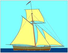 Historically, it was a smallish single-masted, decked sailcraft designed for speed rather than capacity.[3][4] As such, it was gaff-rigged, with two or more headsails and often a bowsprit of some length, with a mast sometimes set farther back than on a sloop.[5]