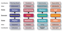 The theory distinctively proposes that human experience is structurally organized into metamotivational domains, of which four have been identified.[9] Each domain consists of a pair of opposing values or motives so that only one of each pair can be experienced in any given moment. Each pair in a domain represents two opposite forms of motivation - only one state in each pair can be active at a time. Humans reverse between the states in each pair depending on a number of factors, including our inherent tendency to adopt one style over the other.[10]