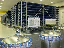 A reverse osmosis plant is a manufacturing plant where the process of reverse osmosis takes place. Reverse osmosis is a common process to purify or desalinate contaminated water by forcing water through a membrane.[1] Water produced by reverse osmosis may be used for a variety of purposes, including desalination, wastewater treatment, concentration of contaminants, and the reclamation of dissolved minerals.[2] An average modern reverse osmosis plant needs six kilowatt-hours of electricity to desalinate one cubic metre of water.[3] The process also results in an amount of salty briny waste. The challenge for these plants is to find ways to reduce energy consumption, use sustainable energy sources, improve the process of desalination and to innovate in the area of waste management to deal with the waste. Self-contained water treatment plants using reverse osmosis, called reverse osmosis water purification units, are normally used in a military context.
