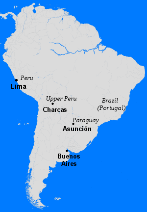 Governors in office were more constrained than elsewhere in the Spanish Empire.[4] Unpopular governors faced the threat of being removed through the application of the Decree of 1537; but even when such drastic measures were not used, the governor's power was curtailed. The cabildo (town council) of Asunción was powerful, and governors often found it difficult for their edicts to be enforced or obeyed if they acted without consulting the cabildo and securing its consent.[5] Spain contributed relatively little in the way of troops, officials, funds, or armaments to Paraguay, and after it was determined that the region was not in fact rich in precious metals or other resources, immigration slowed.[6] However, the interior of South America was dangerous, with Portuguese-aligned slavers and hostile Indian tribes to threaten the Paraguayans. Paraguay fended for itself with an armed militia. This also limited the governor's influence, as it was the members of the cabildo who rallied the militia.[5]