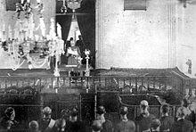 Reza Shah was the first Iranian Monarch in 1400 years who paid respect to the Jews by praying in the synagogue when visiting the Jewish community of Isfahan; an act that boosted the self-esteem of the Iranian Jews and made Reza Shah their second most respected Iranian leader after Cyrus the Great. Reza Shah's reforms opened new occupations to Jews and allowed them to leave the ghetto.[40] This point of view, however, may be refuted by the claims that the anti-Jewish incidents of September 1922 in parts of Tehran was a plot by Reza Khan.[41]