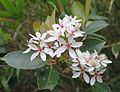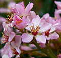 The inflorescences in panicles or terminal of clusters, with many or few flowers; pedicels and peduncles rusty-tomentose; bracts and deciduous bracteoles. Flowers 1-1.3 (-1.5) cm in diameter. The petals white or pink, obovate or lanceolate, 5-7 × 4–5 mm, pubescent basal, obtuse apex. Stamens 15, as long or shorter than the petals.[1]