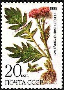 1985 USSR stamp, depicting Rhaponticum carthamoides