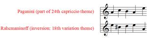 The slow 18th variation is by far the best known, and it is often included on classical music compilations without the rest of the work. It is based on an inversion of the melody of Paganini's theme. In other words, the A minor Paganini theme is literally played "upside down" in D♭ major, with a few other changes. Rachmaninoff himself recognized the appeal of this variation, saying "This one, is for my agent."[4]