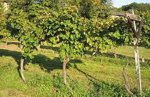 The wild vine, the forerunner of the cultivated Vitis vinifera is known to have grown on upper Rhine back to historic time, and it is possible (but not documented) that Roman-era German viticulture was started using local varieties. Many viticultural practices were however taken from other parts of the Roman empire, as evidenced by Roman-style trellising systems surviving into the 18th century in some parts of Germany, such as the Kammertbau in the Palatinate.[5]