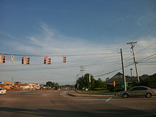 After the reservoir, Route 108 bends northward, becoming a two-lane residential street as it winds northward through the town of South Kingstown. The route crosses Curtis Corner Road and becomes a commercial street once again, which quickly switches back to residences. The route soon bends northward entering the village of Kingston. In Kingston, Route 108 retains its Kingstown Road name, becoming a two-lane residential street before intersecting with Route 138 (Mooresfield Road) in the center of the village. This intersection serves as the northern terminus of Route 108, while the Kingstown Road name continues west on Route 138.[2]