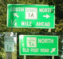 At various points in time, every segment of Route 1A except the one in Westerly served as part of U.S. 1, which historically was the lower routing of the Boston Post Road mail route. The Route 1A designation came after the U.S. 1 designation was moved to a different alignment. This led to most segments of Route 1A being named Old Post Road or Post Road, while much of US 1 is now named the Commodore Perry Highway.