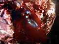 Presence of the water-soluble pigments called phycobilins (phycocyanobilin, phycoerythrobilin, phycourobilin and phycobiliviolin), which are localized into phycobilisomes, gives red algae their distinctive color.[43] Chloroplast contains evenly spaced and ungrouped thylakoids.[44] Other pigments include chlorophyll a, α- and β-carotene, lutein and zeazanthin. Double membrane of chloroplast envelope surrounds the chloroplast. Absence of grana and attachment of phycobilisomes on the stromal surface of the thylakoid membrane are other distinguishing characters of red algal chloroplast.[45]