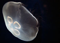 Moon jelly (Aurelia aurita) with rhopalia visible in indentations of rim