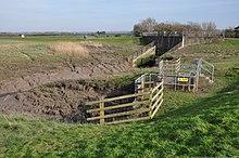 Rhynes have been used extensively in the United Kingdom, especially on marshy coastal areas such as the Somerset Levels, and the North Somerset Levels. Other examples in England exist in the Framilode and Saul area of Gloucestershire, where they drain into either the River Severn or Sharpness Canal, and the Pilning Levels alongside the Severn Estuary in South Gloucestershire between Avonmouth and Aust.[1] In southeast Wales, they can be found on the Caldicot and Wentloog Levels. Many of them are still in use today.