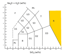 - ^ Le Bas, M. J.; Streckeisen, A. L. (1991). "The IUGS systematics of igneous rocks". Journal of the Geological Society. 148 (5): 825–833. Bibcode:1991JGSoc.148..825L. CiteSeerX 10.1.1.692.4446. doi:10.1144/gsjgs.148.5.0825. S2CID 28548230.