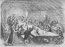 The Ribbon Society was principally an agrarian secret society, whose members consisted of rural Irish Catholics.[1] The society was formed in response to the miserable conditions in which the vast majority of tenant farmers and rural workers lived in the early 19th century in Ireland. Its objective was to prevent landlords from changing or evicting their tenants. Ribbonmen also attacked tithe and process servers, and later evolved the policy of Tenants' Rights.[2] The existence of "ribandmen" was recorded as early as 1817.[3] The name is derived from a green ribbon worn as a badge in a button-hole by the members.[4]
