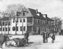 The Republic of Texas used this as its capitol building from 1837 to 1839, and again from 1842 to 1845.[3] In 1841, Mr. M. Norwood leased the building from Augustus Allen, and ran it as the Capitol Hotel. After the Texas government left Houston again, Augustus Allen resumed leasing the building to various hotel operators. Charlotte Allen sold the property to R.S. Blount in 1857. There were various hotel operators between 1857 and 1881 with a few name changes (Houston House and Barnes House).[3] It is not clear how long Charlotte owned the property before it was sold in 1857. John Kirby Allen had died in 1838 without a will. After 1843, there was a dispute about his estate, which led to a permanent estrangement between Augustus and Charlotte Allen. Augustus left Houston in 1852.[4]