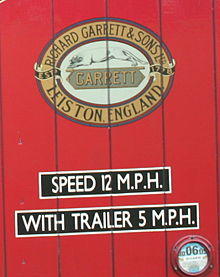 Garrett obtained a patent, No.103,617 in 1916 for an interlocking device, that ensured that the current to the motor of an electric vehicle was disconnected automatically when the brakes were applied, and that ensured the vehicle could not be driven away with the handbrake still applied.[2] One of their first electric vehicles was bought by the Great Eastern Railway, and worked at Norwich. It had an 8 hp (6.0 kW) motor, which was fully enclosed and mounted in front of the rear axle. This was connected to a differential cross shaft by chains running in an oil bath, which was in turn connected to the rear axle by two roller chains. The batteries were mounted below the chassis, to the rear of the driver's seat, while the control system included the patented interlock, providing six forward speeds and four in reverse. The range of the vehicle was between 35 and 40 miles (56 and 64 km) on a single charge, at speeds of 9 to 10 miles per hour (14 to 16 km/h). In 1917 Garrett also made a smaller 2.5-ton model, of a similar design.[3]