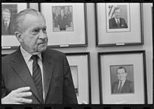 Local and national Republican leaders encouraged Nixon to challenge incumbent Pat Brown for Governor of California in the 1962 election.[95] Despite initial reluctance, Nixon entered the race.[95] The campaign was clouded by public suspicion that Nixon viewed the office as a stepping-stone for another presidential run, some opposition from the far-right of the party, and his own lack of interest in being California's governor.[95] Nixon hoped that a successful run would confirm him in his status as the nation's leading active Republican politician, and ensure he remained a major player in national politics.[101] Instead, he lost to Brown by more than five percentage points, and the defeat was widely believed to be the end of his political career.[95] In an impromptu concession speech the morning after the election, Nixon blamed the media for favoring his opponent, saying, "You won't have Nixon to kick around anymore because, gentlemen, this is my last press conference".[102] The California defeat was highlighted in the November 11, 1962, episode of ABC's Howard K. Smith: News and Comment entitled "The Political Obituary of Richard M. Nixon".[103] Alger Hiss appeared on the program, and many members of the public complained that it was unseemly to allow a convicted felon air time to attack a former vice president. The furor drove Smith and his program from the air,[104] and public sympathy for Nixon grew.[103]