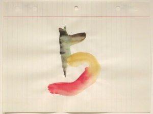 In the early 1980s, Tuttle embarked on an extensive series of suites of watercolors, The Loose Leaf Notebook Drawings. Each sheet consisting of a few strokes on low-grade loose leaf paper. The paints bleed and pooled, causing the paper to buckle, giving the works three-dimensionality.[11] The illustration from the suite 5 Loose Leaf Notebook Drawings from 1980 to 1982, in the collection of the Honolulu Museum of Art, demonstrates how the suites challenge viewers to contemplate the distinction between fine art and trash. His works in the 1990s consisted mostly of smaller-sized work, followed by bodies of low-relief wall-bound pieces that integrate painting, sculpture, and drawing.[8]