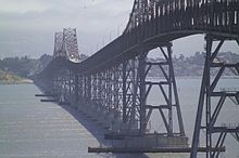 At the time the bridge was completed, it was hailed as the world's second-longest bridge, behind the San Francisco–Oakland Bay Bridge[44] and the longest continuous steel bridge.[45]