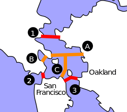 - ^ Regional Measure 1 Toll Bridge Program. bata.mtc.ca.gov; Bay Area Toll Authority. Archived November 1, 2010, at WebCite