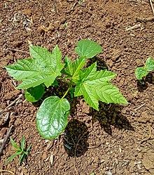 It is also used extensively as a decorative plant in parks and other public areas, particularly as a "dot plant" in traditional bedding schemes. If sown early, under glass, and kept at a temperature of around 20 °C (68 °F) until planted out, the castor oil plant can reach a height of 2–3 metres (6.6–9.8 ft) in a year. In areas prone to frost it is usually shorter, and grown as if it were an annual.[5] However, it can grow well outdoors in cooler climates, at least in southern England, and the leaves do not appear to suffer frost damage in sheltered spots, where it remains evergreen.[19] It was used in Edwardian times in the parks of Toronto, Canada. Although not cultivated there, the plant grows wild in the US, notably Griffith Park in Los Angeles.[20]