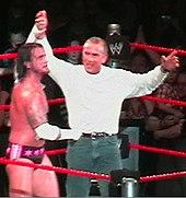 After an eight-year retirement, Steamboat played an important role in the genesis of Total Nonstop Action Wrestling (TNA), where he was the referee of the first Gauntlet for the Gold for the NWA World Heavyweight Championship.[65] He was also the referee for the four-way double-elimination match to crown the first holder of the TNA X Division Championship.[1] He has also made appearances for Ring of Honor where he refereed the first defense of the ROH Pure Wrestling Championship.[66] In 2004, he engaged in a series of confrontations with CM Punk over Punk's arrogance in matches Steamboat refereed and then became CM Punk's inspiration to become the better person Steamboat knew he could be.[67] The latter part of 2004 saw Steamboat feud with Mick Foley over which style of wrestling was superior, pure wrestling or hardcore wrestling.[68] The two of them had many confrontations and managed teams to face one another, but never had a match against each other.[69] Steamboat's last ROH appearance was at Final Battle 2004 where he and Foley finally made peace.[70]