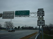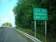 The myriad of designations were mostly replaced with one c. 1935: U.S. Route 104 (US 104). NY 31 and NY 3 were moved off Ridge Road, while NY 18 became concurrent to US 104. Over the next half-century, however, the portion of US 104 (and later NY 104) from the Genesee River eastward was gradually relocated from Ridge Road to new expressways and freeways that were constructed in the vicinity of the old road. A 5.5-mile (8.9 km) section of NY 104's former routing along Ridge Road in Webster was retained as a state highway as part of NY 404; however, most of the old alignment was given to the counties or villages instead.