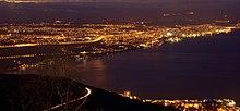 Rijeka (/riˈɛkə, riˈeɪkə/ ree-EH-kə ree-AY-kə, also US: /riˈjɛkə/ ree-YEH-kə,[2][3] Croatian: [rijěːka] ; Hungarian: Fiume, Italian: Fiume [ˈfjuːme]; Slovene: Reka; German: Sankt Veit am Flaum) is the principal seaport and the third-largest city in Croatia (after Zagreb and Split). It is located in Primorje-Gorski Kotar County on Kvarner Bay, an inlet of the Adriatic Sea and in 2011 had a population of 128,624 inhabitants.[1] Historically, because of its strategic position and its excellent deep-water port, the city was fiercely contested, especially between Italy, Hungary (serving as the Kingdom of Hungary's largest and most important port), and Croatia, changing rulers and demographics many times over centuries. According to the 2011 census data, the majority of its citizens are Croats, along with a large minority of Serbs, and smaller numbers of Bosniaks and Italians.