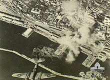 Because of its industries (oil refinery, torpedo factory, shipyards) and its port facilities, the city was also a target of more than 30 Anglo-American air attacks,[40] which caused widespread destruction and hundreds of civilian deaths. Some of the heaviest bombardments happened on 12 January 1944 (attack on the refinery, part of the oil campaign),[41] on 3–6 November 1944, when a series of attacks resulted in at least 125 deaths and between 15 and 25 February 1945 (200 dead, 300 wounded).[42]