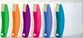 Ring binders (loose leaf binders, looseleaf binders, or sometimes called files in Britain) are large folders that contain file folders or hole punched papers. These binders come in various sizes and can accommodate an array of paper sizes. These are held in the binder by circular or D-shaped retainers, onto which the contents are threaded. The rings themselves come in a variety of sizes, including 0.5", 1", 1.5", and 2", though other sizes are also available. The rings are usually spring-loaded, but can also be secured by lever arch[1] mechanisms or other securing systems. The binders themselves are typically made from plastic with metal rings. Early designs were patented during the early 1890s to the early 1900s.