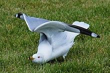 The ring-billed gull is a familiar sight in American parking lots, where it can regularly be found congregating in large numbers.[5][6] In some areas, it is displacing less aggressive birds such as the common tern.