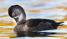 The ring-necked duck (Aythya collaris) is a diving duck from North America commonly found in freshwater ponds and lakes.[2] The scientific name is derived from Greek aithuia an unidentified seabird mentioned by authors including Hesychius and Aristotle, and Latin collaris, "of the neck" from collum, "neck".[3]