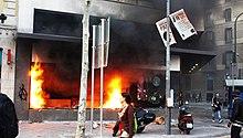 Riots typically involve destruction of property, public or private. The property targeted varies depending on the riot and the inclinations of those involved. Targets can include shops, cars, restaurants, state-owned institutions, and religious buildings.[1]