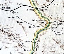 Ripley was established in 1920 when the California Southern Railroad (unrelated to the railroad linking Barstow and San Diego) was extended from Blythe. The townsite was named to dedicate former Santa Fe Railway president Edward Payson Ripley.[3] The town aimed to be a resort location until it was damaged by a flood that swept part of the valley in 1922. Today, a water tower remains as a landmark in town.[4]