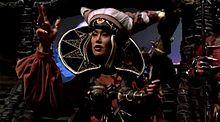 Rita Repulsa is a fictional character from the television series Mighty Morphin Power Rangers, and the principal nemesis and archenemy of the main superheroes in the show's first season.[1] She is portrayed in the first season by Machiko Soga and by Carla Perez in the remaining seasons, while voiced by Barbara Goodson in the series. Soga reprised her role as Rita, now the Mystic Mother, while Susan Brady provided her voice in the TV series Power Rangers Mystic Force. In the films, she is portrayed by Julia Cortez in Mighty Morphin Power Rangers: The Movie, and by Elizabeth Banks in the 2017 reboot film. Rita Repulsa is based on the Kyōryū Sentai Zyuranger villain Witch Bandora.[2][3][4]