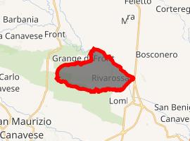 Rivarossa is a comune (municipality) in the Metropolitan City of Turin in the Italian region Piedmont, located about 20 km north of Turin. Rivarossa borders the following municipalities: Rivarolo Canavese, Oglianico, Front, San Francesco al Campo, and Lombardore.