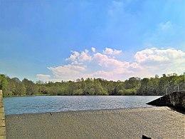 The lake at Rowley and the Brun's course onward to Heasandford is an artificial creation of the 1970s. Previously this section of the river flowed further to the west, with the Don collecting Swinden Water before meeting the Brun close to the mill lodge. Bank Hall was formerly the site of a significant coal mine that operated for over 100 years up to 1971,[10] with another near Rowley Hall that operated between 1861 and 1928, and the area was used as a spoil tip for generations. The mine workings caused significant levels of pollution in the river and the diversion scheme also allowed the valley of the old route to be used as a landfill site.[4][11][12]