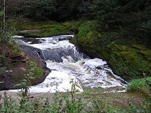 Originating at Jack's Key Clough where Grain Brook and Grainings Brook meet, the two streams from Bull Hill and Cranberry Moss respectively,[1] the river flows through the town of Darwen, continuing into the suburbs of Blackburn past Ewood Park. The river passes below the Leeds and Liverpool Canal at Ewood Aqueduct and is culverted again at Waterfall and near Griffin Park. It is joined by the River Blakewater near Witton Country Park in Blackburn and leaves the mostly urban landscapes of the towns behind, flowing through parklands and valleys.[2] A further tributary, the River Roddlesworth, joins the Darwen at the bottom of Moulden Brow on the boundary between Blackburn with Darwen and Chorley Borough Council (the name Moulden Brow being associated with Moulden Water, an alternative name for this stretch of the river). From there, the Darwen flows past Hoghton Tower through Hoghton Bottoms and Samlesbury Bottoms, finally combining with the River Ribble at Walton-le-Dale.[3]