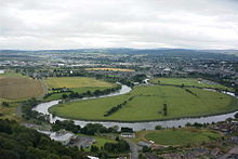 The River Forth is a major river in central Scotland, 47 km (29 mi) long, and draining into the North Sea on the east coast of the country. Its drainage basin covers much of Stirlingshire in Scotland's Central Belt.[1] The Gaelic name is Abhainn Dubh, meaning "black river", in the upper reach above Stirling. Below the tidal reach,[2] (just after being crossed by the M9 motorway) its name is Uisge For.