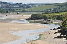 In 2014, storms damaged a wall that altered the course of the river, so that it now flows across Crantock beach.[4]