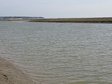 Here the river turns southwards to the once-thriving port of Sandwich, after which it loops back on itself to the north before entering the Strait of Dover at Pegwell Bay. The Stonar Cut obviates the need for seagoing craft to take the longer route around the loop at Sandwich.[2]