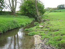 The source, of what is known at that point as the Great Stour, is near the village of Lenham, within a short distance of the River Len, a tributary of the Medway. The source is at a high elevation close to the North Downs escarpment. At first the river flows south east in a narrow valley parallel to the escarpment and the Greensand ridge to the south, before breaking through the ridge near Hothfield into a broad valley. Three small streams enter from the north, having their headwaters on the close to Downs escarpment. Flood defences can turn this valley into a large lake and an embankment has had to be built to prevent overflow into the Medway catchment barely 100 metres away to the south. The river turns north east by the village of Great Chart in the direction of its outlet to the sea.