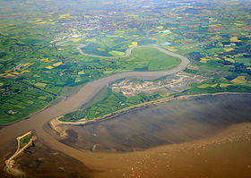 The course of the river below Bridgwater is now somewhat straighter than in former times. The village of Combwich lies adjacent to a channel in the river known as "Combwich Reach"; from here the Parrett flows to the Bristol Channel past the Steart Peninsula. Cartographic evidence indicates that in the early 18th century the peninsula was longer than at present.[15] A "neck" started to form in the peninsula, and by 1802 the tip had broken off to form Stert Island.[15] Fenning Island also broke away but has rejoined the peninsula.[15] Much of the peninsula's northern end eroded away or now exists as "islands" visible at low tide within an intertidal area of mud known as the Stert Flats.[15]